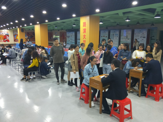 紧接着到了问答环节。毕业生们都很积极举手问出他们疑惑的问题。有毕业生问:“请问今后的工作地点在何处?入职后的调薪和升职是怎样的?”“入职以后工作地点可双向选择,公司有考核标准,会通过考核标准给出你调薪的要求和升职的机会。”谢先生如是答道。问答环节结束后,美的物业现场面试随即开始,有意向的毕业生们有秩序地排队进行面试……