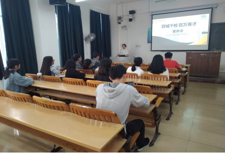 2018年10月25日下午,广东振茂电子商务有限公司在我校明理楼N402教室举行宣讲会。此次宣讲会由贵公司周女士主讲,来自我校商学院和马克思主义学院的部分2019届毕业生参加了此次宣讲会。