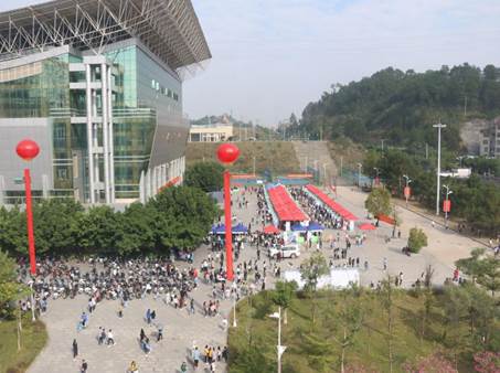 2018年11月24日上午9:00,梧州学院2018年冬季毕业生“青聘果”智能招聘会(以下简称“双选会”)在体育馆一楼内及外广场举行。来自我校各二级学院的4500多名应届毕业生与非应届毕业生参加了本次双选会。