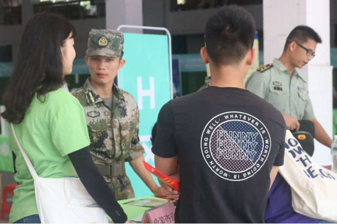 上午10点,各位领导入场了解用人单位“薪资福利、工作地点、招聘人数、招聘专业”等多方面的招聘信息,领导们还与征兵负责人进行交谈,了解我校学生对征兵的了解度与参与性等。