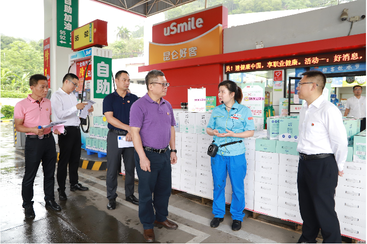调研组在袁家三书记的陪同下参观校友代表任职的中国石油广西梧州销售分公司龙母庙加油站。