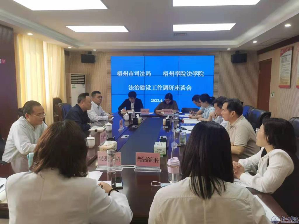 3月31日,法学院与梧州市消防救援支队举行特约研究员签约仪式;4月11日法学院到市司法局调研,双方围绕执法人员培训和科研平台建设进行了深入探讨;4月15日法学院到梧州市税务局调研,双方围绕学生就业实习和“财税法治研究所”的设立进行了重点讨论;4月23日法学院到市政法委就“后疫情时代市域治理”进行调研;4月28日法学院到梧州市人大法工委调研,双方围绕学生就业实习和如何进一步释放“梧州市地方立法研究评估与咨询服务基地”的功能进行了重点讨论。