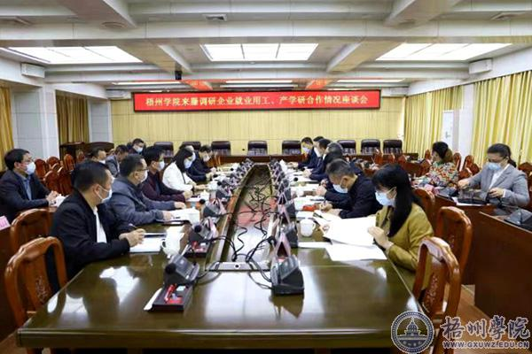 当天,调研组与相关单位、企业进行座谈。期间,梁小霞介绍了藤县企业就业用工、产学研合作情况。调研组成员、藤县相关部门和企业负责人围绕高校毕业生就业优惠政策、校企双方用工需求对接、大学生实习实训基地建设等方面展开深入交流,就校企合作人才培养、选派学校高层次人才担任企业科技特派员、提升校企供需对接和科研成果转化成效等方面内容进行探讨。