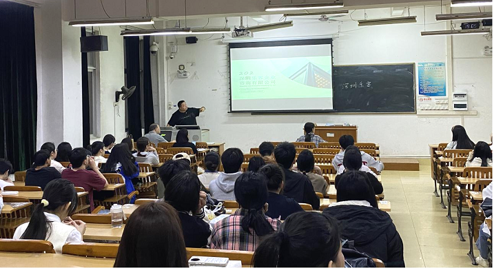 4月12日晚,深圳乐客企业咨询有限公司总经理宗春应邀来校,在明理楼南楼401教室为我院2025届毕业生开展就业宣讲会。国际经济与贸易教研室主任刘磊、毕业班辅导员谢兵及全体2025届国贸专业学生参加活动。