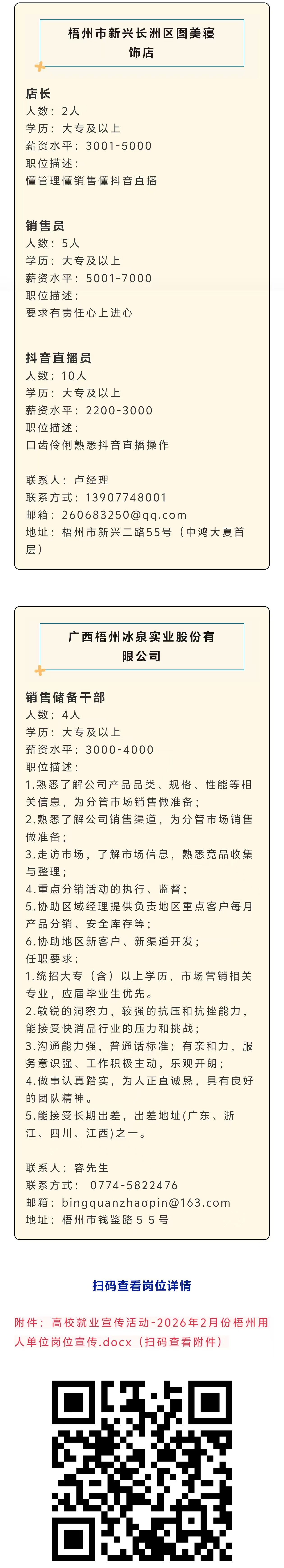 下一条:【高校就业宣传】1月份梧州用人单位岗位宣传