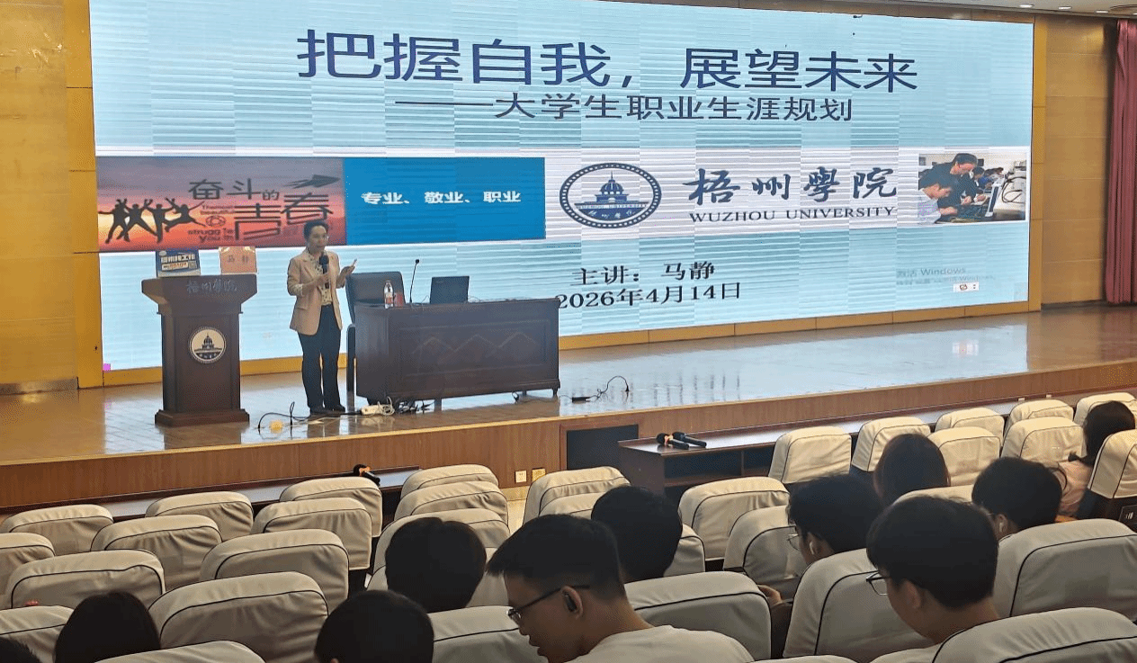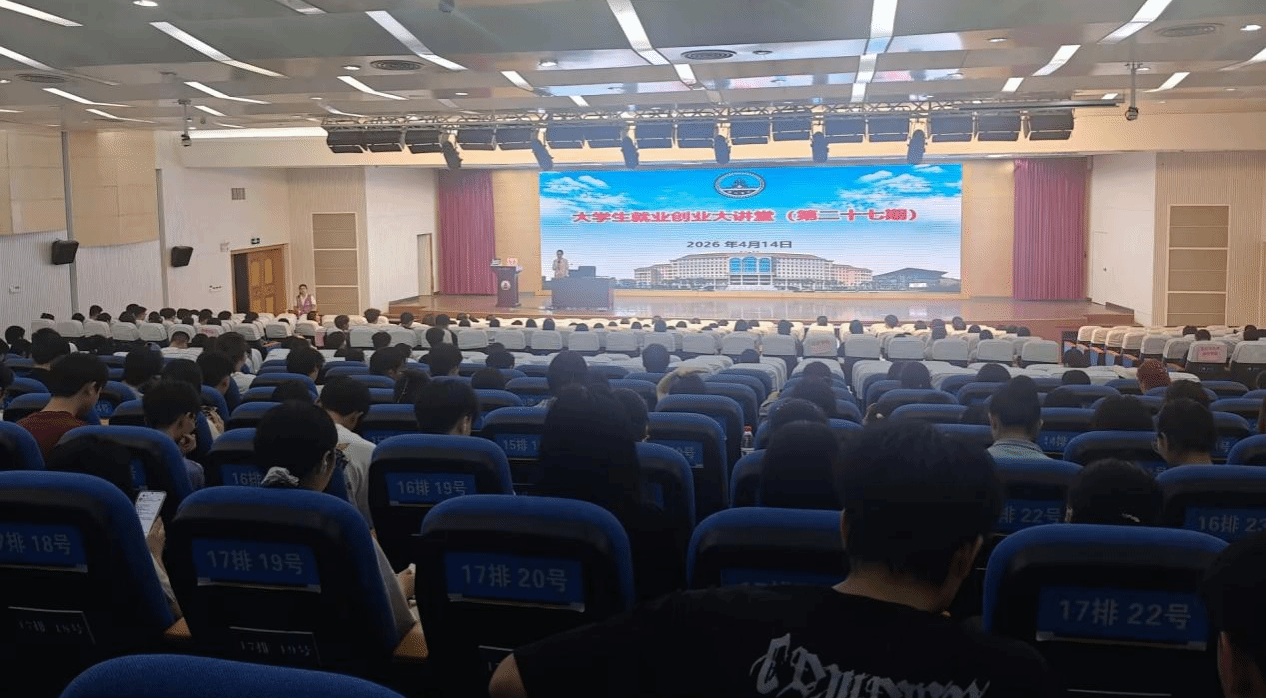 为深入落实高校毕业生就业创业工作部署,切实提升学生职业规划与就业能力,2026年4月14日下午,由梧州学院、梧州市人力资源和社会保障局联合主办,梧州市人才服务中心、梧州市人力资源服务中心共同承办的第二十七期大学生就业创业大讲堂在学校明理楼一楼学术报告厅顺利举办。