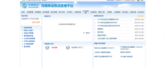 该项目系为中国移动河南分公司开发,用于管理整个河南移动所有机构以及所有供应商之间的所有货物的物流运输。