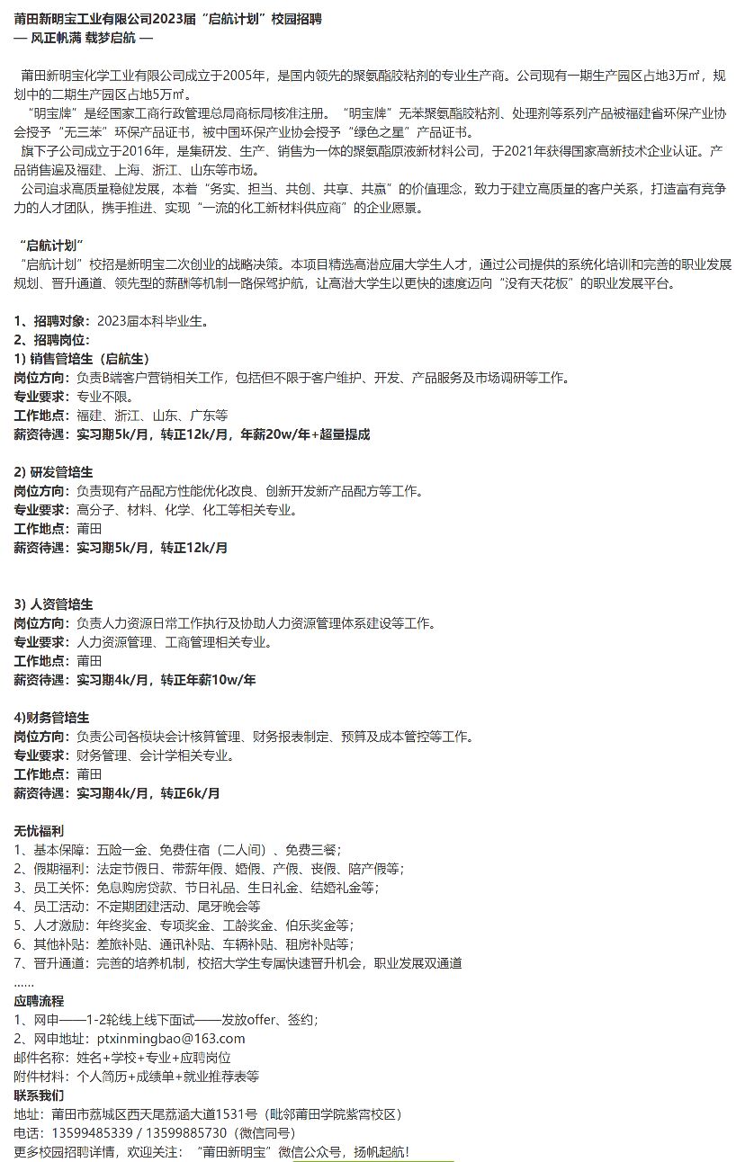 莆田新明宝工业有限公司2023届“启航计划”校园招聘