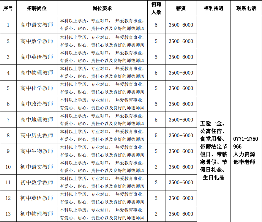 南宁市英华学校招聘信息