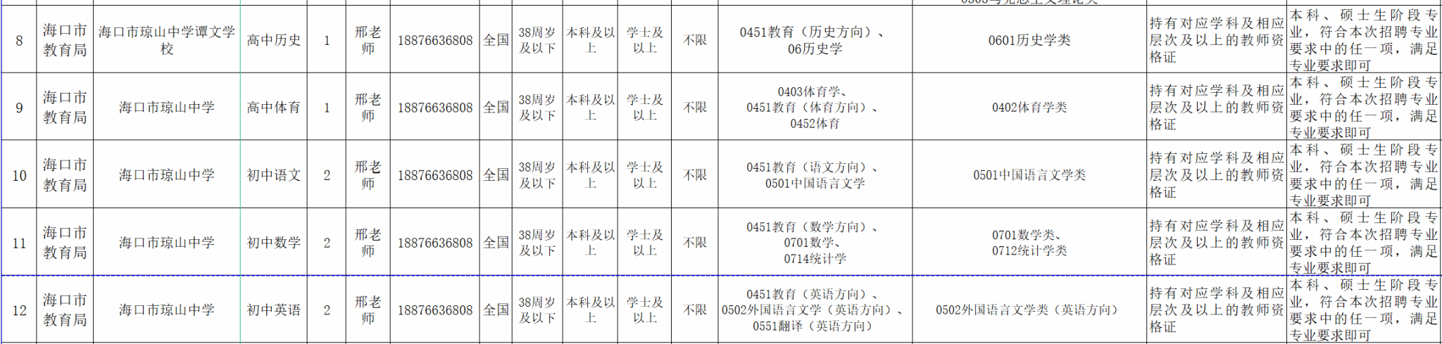 (八)招聘信息查询途径,海口市琼山中学公众号。