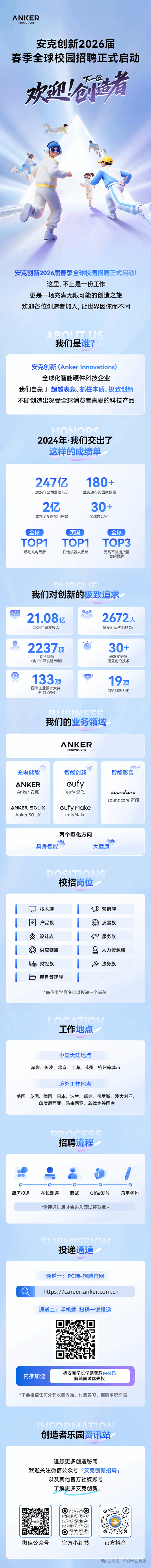 🔋集结未来创造者,挑战3年100万年薪!安克创新2026届春招等你来!