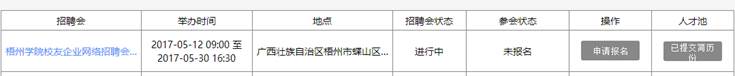 (3)点击“申请报名”选择企业需要招聘的岗位,在“操作”栏点击打“√”,然后点击“提交申请”完成。