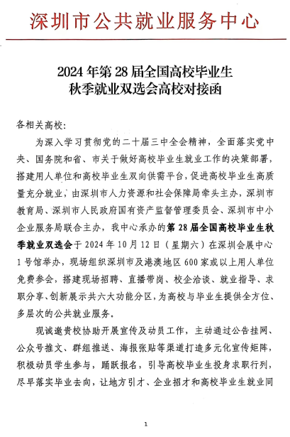 上一条:“追梦鹏城,创享未来”第二十八届深圳市全国高校毕业生秋季就业双选会:600+名企荟萃!15000+优质岗位!等你来解锁!